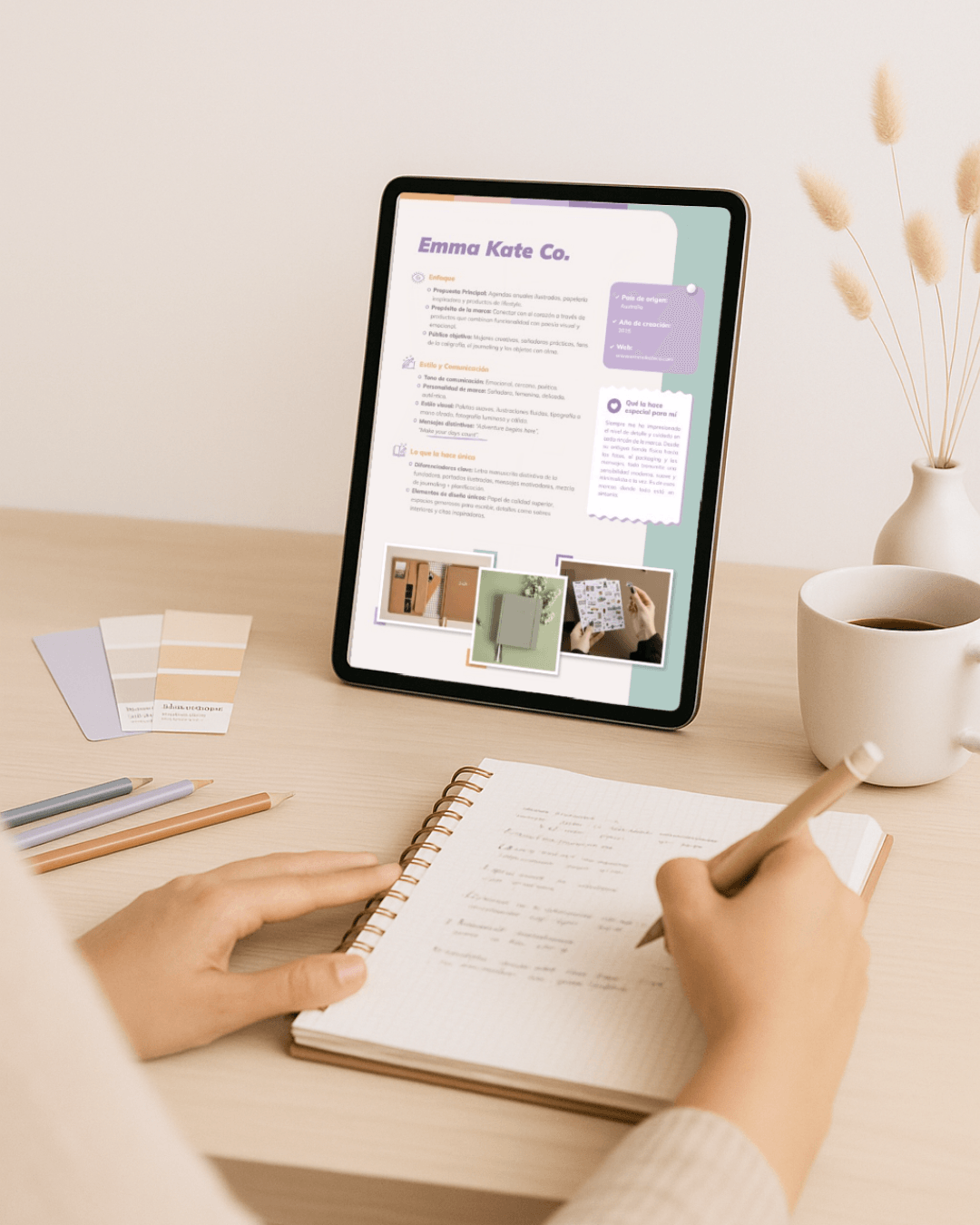 Datos clave como propósito, estilo visual, tono, diferenciadores y comentarios personales.
