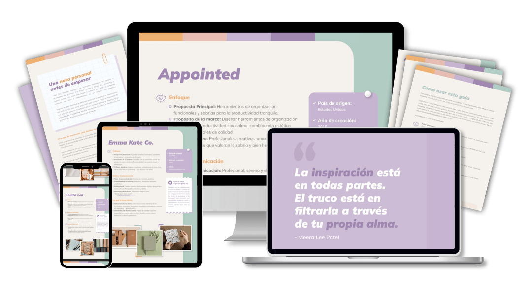 Por eso creé esta Guía de inspiración, no como una lista rápida de marcas bonitas, sino como una brújula visual, curada con ojos de diseñadora y corazón de stationery lover. Reúne lo que me ha inspirado a lo largo del camino, con la intención de ayudarte a mirar con más claridad lo que te mueve a ti.
